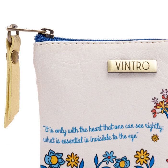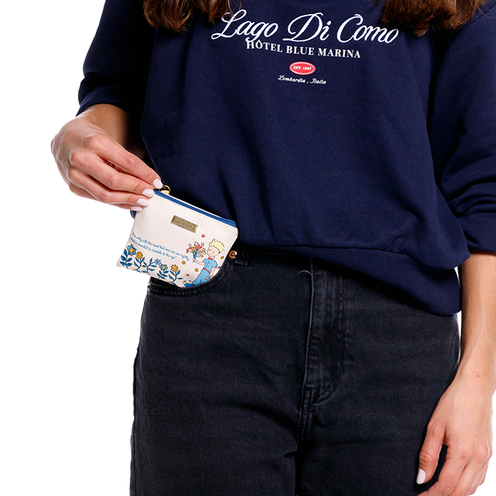 Monedero pequeño estampado inspirado en nuestra colección Principito. Cuenta con un compartimiento con cierre y haladera para monedas. Elaborado en Cuero Vegano 100% Colombiano.